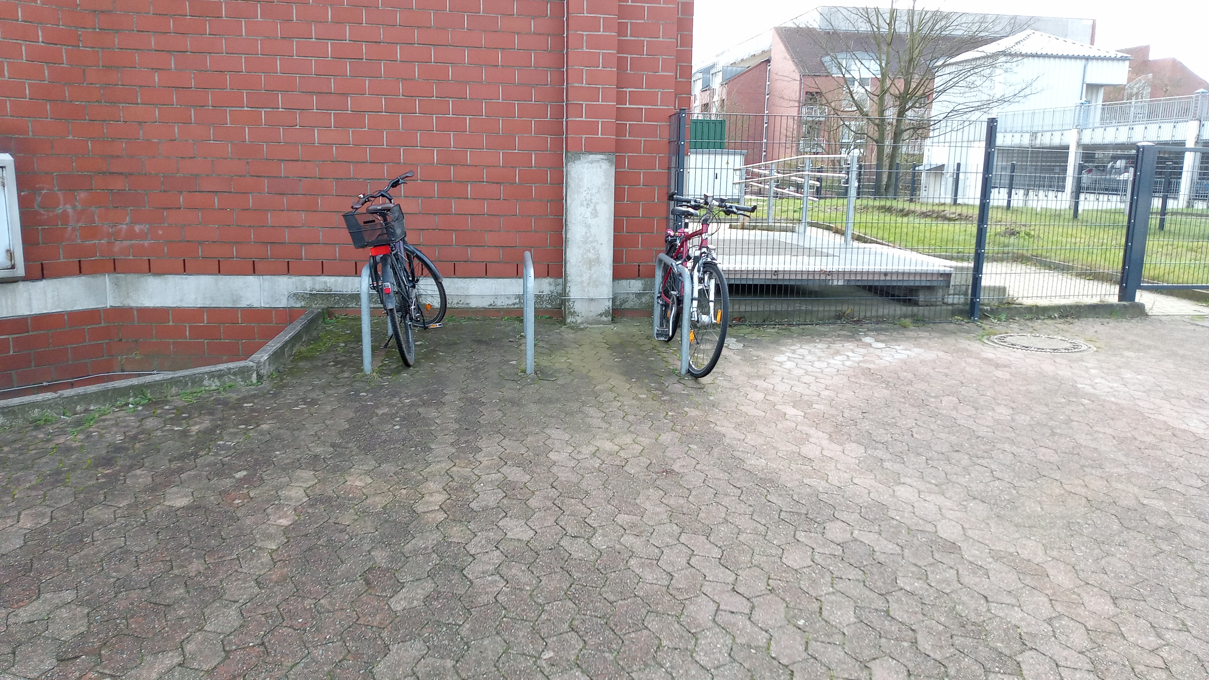 Gerade einmal 3 Bügel, etwas versteckt, aber viel Autoparkplätze