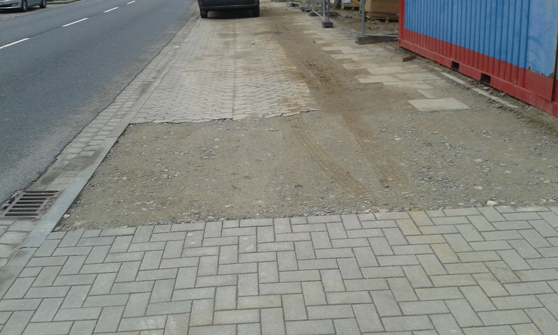 Der alte Radweg ist noch erkennbar - wird vermutlich durch die Plasterung vorn ersetzt.