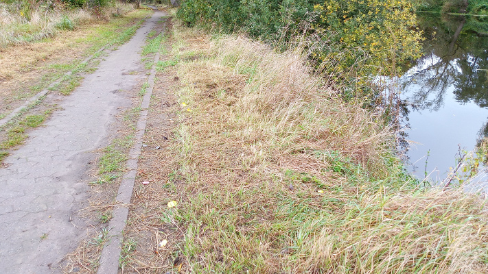 Wegführung sehr nah an der Leine (Abstand Wegesrand zum Ufer ca. 1 m)