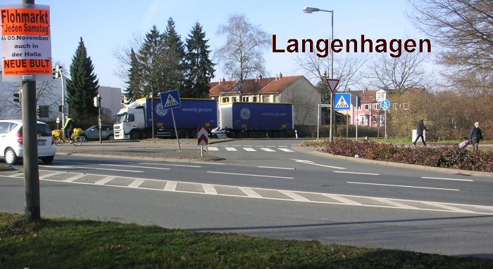 In Langenhagen wird den Zufußgehenden und Radfahrenden Vorrang an der Querung eines Freien Rechtsabbiegers eingeräumt.