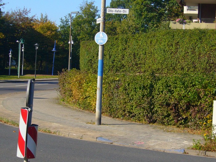 Das Schild "gemeinsamer Fuß- und Radweg" an der Otto-Hahn-Str.