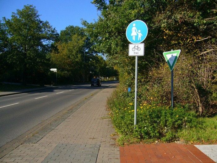 Ab hier muss der Radfahrer nicht mehr den ehemals gemeinsamen Geh-/ Radweg benutzen;