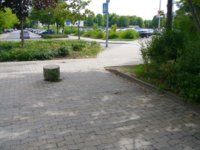 Stolperfalle durch den Kant-/ Abgrenzungstein zur Grünfläche.