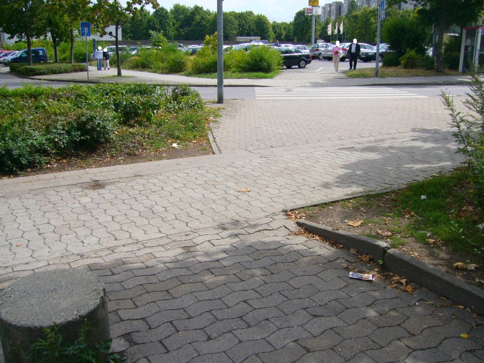 Zebrastreifen läuft man direkt auf die Treppe zu - Absturzgefahr: