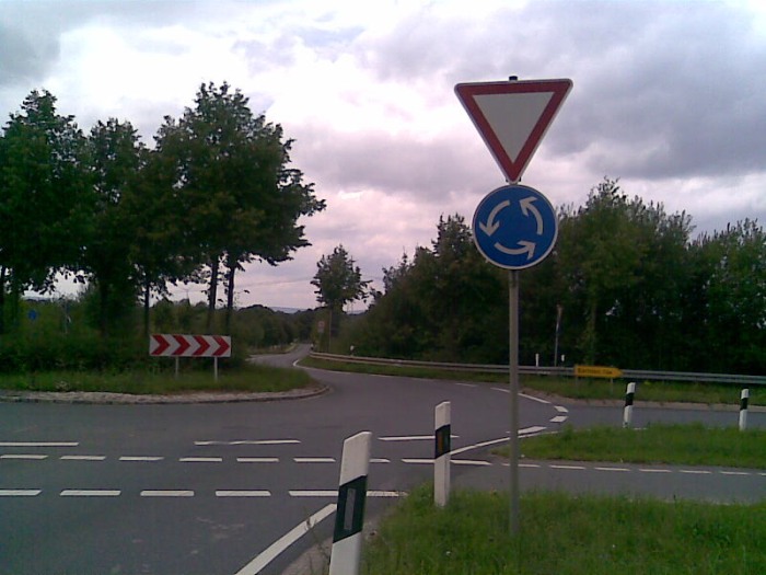 Position der "Vorfahrt achten"-Schilder am Kreisverkehr